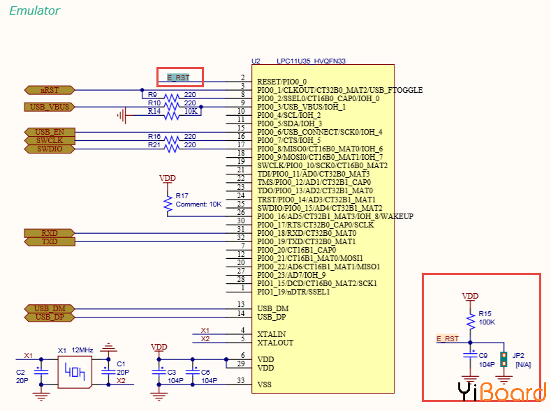 JP2用于将LPC11U325 CMSIS-DAP调试器处于复位状态。如果未使用调试器或在调试控制下,它似乎使调试行处于三线,并且不会影响SWD调试线。因此,除非我想让LPC11U35真正静音,否则不需要使用该跳线。