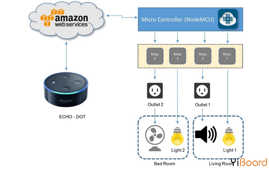 Alexa能够进行语音交互、音乐播放、创建待办事项、设置警报、流播播客、播放有声读物以及提供天气、交通和其他实时信息。 Alexa还可以将自身用作家庭自动化中枢来控制多个智能设备。我们将在该项目中使用“ Echo-Dot”,它允许用户使用唤醒词(例如“ Star Trek!”中的“ Alexa”或“ Computer”)来激活设备。