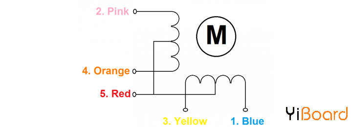 步进电机28-BYJ48的连接方式 步进电动机28-BYJ48是一个具有5引线线圈布置的单极电动机。必须按特定顺序为四个线圈通电。红线连接到+ 5V电压,其余四根线将被拉到接地以触发相应的线圈。我们使用Arduino开发板以特定顺序为这些线圈通电,并使电动机执行所需的步数。