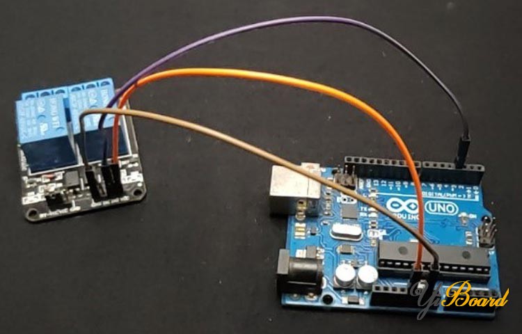组装自动灌溉系统 我们首先将继电器连接到Arduino开发板。将继电器模块的VCC连接到Arduino的5V引脚,继电器的地连接到Arduino的地。现在将继电器信号引脚连接到Arduino的任何数字引脚(引脚 13 除外)。这里我将其连接到引脚3,如下图所示。