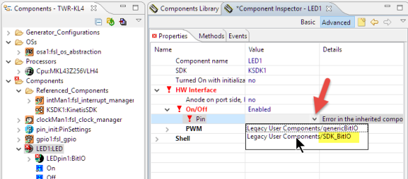 该步骤将添加一些推荐的组件。现在IDE显示错误,因为LED组件需要配置为使用SDK。指定要使用的SDK(本例为1.3):