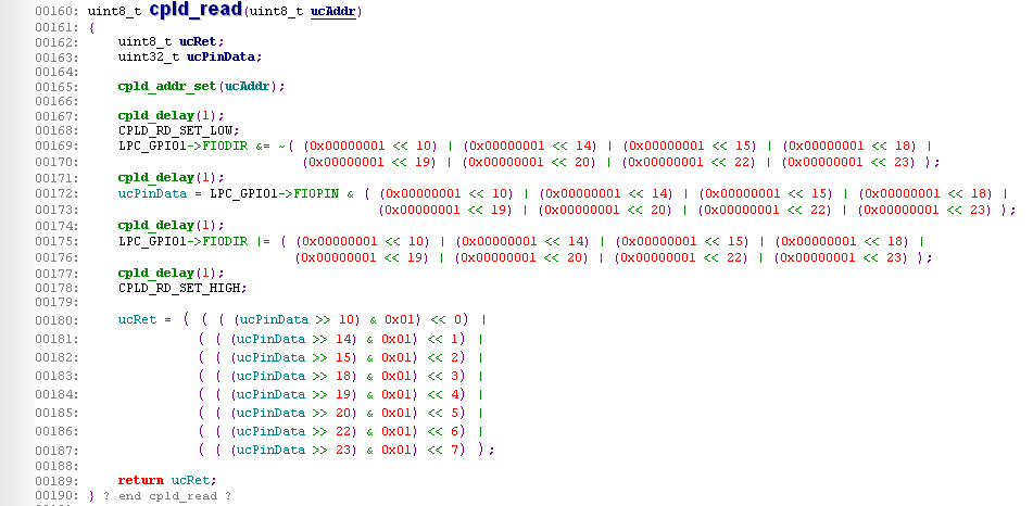 图5 cpld_bus_init函数实现代码图 3.2读函数cpld_read 根据读时序完成实现从CPLD的固定地址里读取数据。