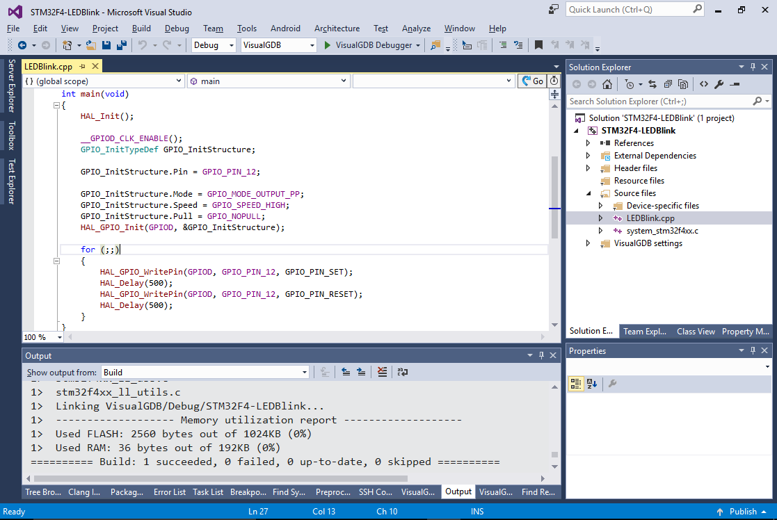本本将主要介绍如何使用Visual Studio创建一个基于STM32F4-Discovery探索板的简单工程。